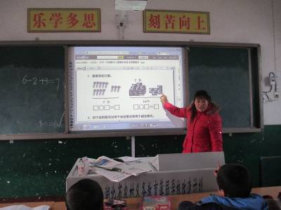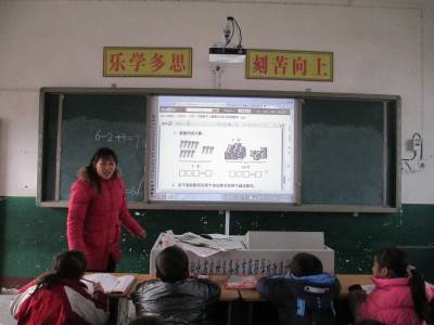 1月17日,竹山县潘口小学教师运用交互式电子白板上课。据介绍,交互式电子白板是利用交互式短焦投影,它集成了投影机、传统电子白板、液晶电视、音响等诸多办公设备功能,替代传统的粉笔黑板的原始教学形式,只需要轻轻将手指在白板上比划,屏幕上就展现出相应的图案,加上特殊的书写软件,使信息处理更为方便,演示更为生动,让课堂“动起来”。竹山县是湖北省义务教育薄弱学校改造计划项目县,由中央财政和县级财政配套为该县农村中小学提供2千万元专项资金,用于购置学校班班通设备、实验室仪器等教学设施。目前全县农村中小学班班通设备安装调试完毕。过去“一张嘴、一块黑板、一支粉笔”为主的课堂教学模式成为历史,教师高兴的进入幸福的“无尘时代”。该项目的顺利实施将极大提升农村学校的办学水平,加快了山区学校教育信息化建设步伐,缩小城乡学校之间差距,进一步优化农村中小学教育资源配置。实现优质教育资源共建共享目标,有力地助推农村学校教育教学质量的提高。(视界网 王定生 摄