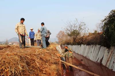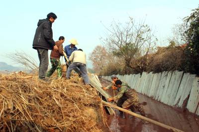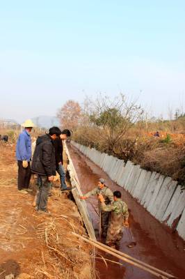 连日来的阴雨天终于放晴,施工人员在大冶市灵乡镇大畈村大桥畈张湾的农田水利建设工地忙碌着。器机轰隆挖沟渠,工人吆喝铺管道,一派热火朝天的劳动场面展现在眼前。据了解,全镇冬春农田水利建设修建沟渠15公里,泵站4座,大港清淤10公里,水库整险8座,各工程的竣工受到了群众的积极拥护和大力支持。