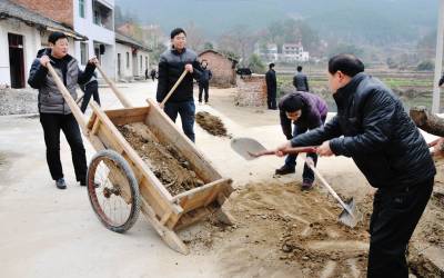 在"万名干部进万村洁万家“活动中,英山县地税局工作队员积极为驻点村办好事、办实事,协助村两委进一步完善垃圾清运、道路维修、村庄绿化等基础设施建设,深受当地群众的欢迎。图为18日上午驻村工作队员在清理垃圾的情景.(吴子光 陈云峰摄影报道)