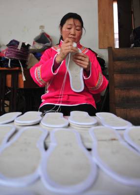 > 湖北咸丰:土家”千层底”布鞋风靡海外