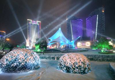 武汉光谷广场雪夜