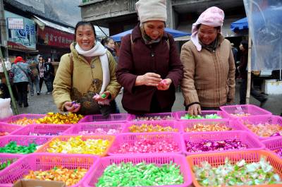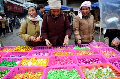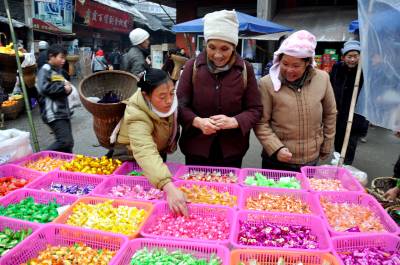 1月24日,笔者在恩施市红土乡红土集市看到,几位大妈正在选购糖果等年货。进入腊月,各集贸市场上人头攒动,透着浓浓的年味。恩施市乡村市场备足货源并纷纷开辟年货卖场,采取打折让利等优惠措施,使得副食、服装、饰品、电器等各类新年用品进入销售旺季,节日商品琳琅满目,农民们忙着购置年货,欢欢喜喜迎新春。