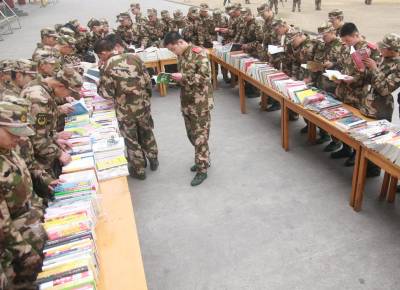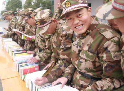 湖北省科教图书馆给武警某部新兵送”精神食粮”