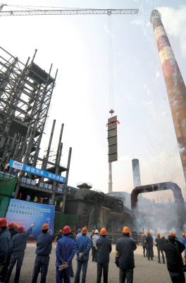 国内最大余热锅炉开始安装
