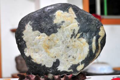 2009年底,湖北省宜昌市夷陵区奇石收藏老人郑方炎在途经三峡大坝的路上偶然发现了这块中国”地图石”。”地图石”上,完整的中国人民共和国版图显现得惟妙惟肖,海南岛、台湾、山东半岛、辽东半岛、渤海湾、长江、黄河等都在石头上淋漓尽致地显现。