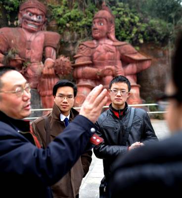 1月27日,在恩施市举办的今年第一期导游员(讲解员)培训班上,一名男导游正在认真听课(图一)。当天下午,专家还带着导游来到土司城风景区讲解恩施民俗和旅游方面的知识,两名男导游正在现场听专家讲解(图二)。近年来,随着”两路”的开通和恩施旅游事业的发展,越来越多的外地游客大量进入恩施,现有的导游员数量已经不能满足旅游发展的需要,一些身体素质好、办事能力强的男导游也因此受到景区欢迎。