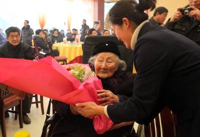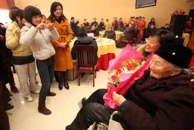 1月28日,襄樊市助老会、福建襄樊商会和襄樊日报社举办爱心企业家与百岁老人新年团拜会,福建商会的企业家和襄樊的长寿老人们欢聚一堂,共迎新春。据了解,襄樊市百岁以上的老年人已有123人。主办单位举办这一大型团拜会,旨在呼吁全社会关爱老年人,对生活困难及精神孤独的百岁老年人给予实际帮助和照料。