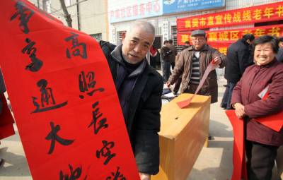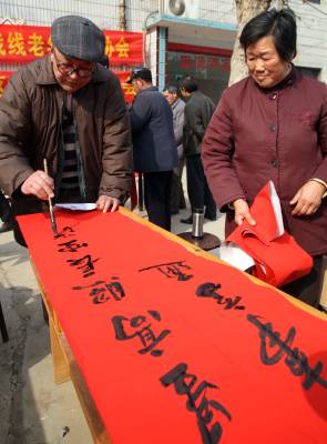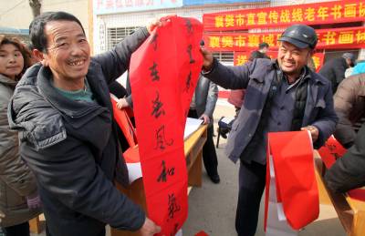 送来喜庆和祝福1月28日,襄樊市直宣传战线老年书画协和襄城区老年书画协会20多名会员,来到襄城区尹集乡,为该乡的农民群众书写对联,为他们送来喜庆和祝福。