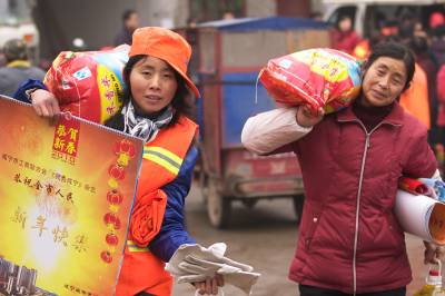 2010年1月28日上午,由共青团咸安区委、咸安区文明办、咸安区移动公司和市麻塘风湿病医院联合举办的”春节慰问环卫工人活动”在咸安区环卫所举行。活动现场,咸安区移动公司为50名环卫工人送去了大米、油、对联、手套、挂历等春节物质;市麻塘风湿病医院还免费为每一位环卫工人进行健康检查,提供医务资询,发放药品,赠送50张体检卡,让每一位环卫工人都能过一个快乐、详和、平安的春节。赵忠志吴涛夏正峰/摄