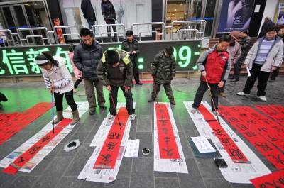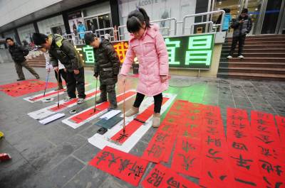 宜昌万幅春联贺新春1月30日,少年书法爱好者正在书写春联。当日,宜昌市举行万幅春联贺新春及市民品”联”会,来自宜昌市的100多名书法家和书法爱好者,在广场路为群众挥毫泼墨,弘扬国粹喜迎新春。黄翔摄13986769494