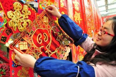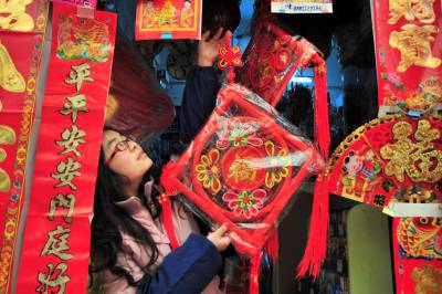 > 返乡大学生体验新春节日市场