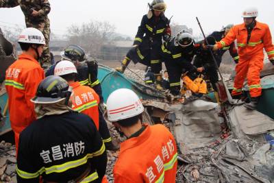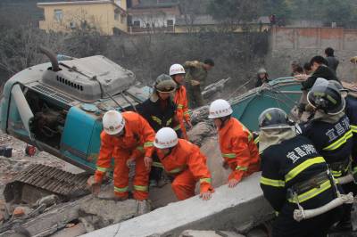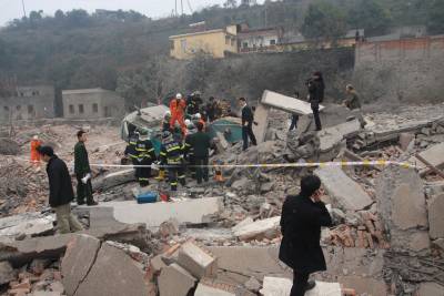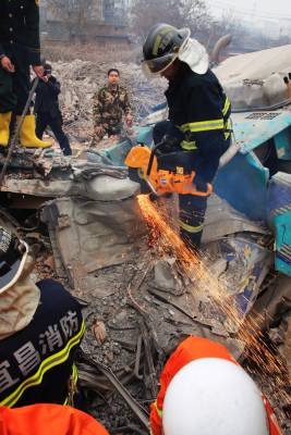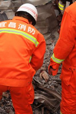 宜昌落石埋没挖掘机1月30日,宜昌城区宝塔河附近一酱油厂七层高楼房在拆除过程中发生坍塌,落下的砖石将现场作业的一辆挖掘机埋没,造成一死一伤。林潇摄
