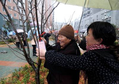 ”空巢”老人认养树木2月2日,黄石市十五冶社区76岁的独居”空巢”老人李玉瑛冒着绵绵细雨将树木认养卡挂在树上。十五冶社区共有近千名老人,其中独居老人有51名,社区为了让独居老人走家门,特组织了她们参加的”独居老人同认幸福树,绿色社区共创和谐景”为主题的树木认栽认养活动。黄石市黄石日报摄影部邱孝威摄电话:13807232603邮编:435002
