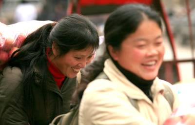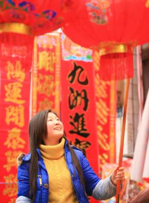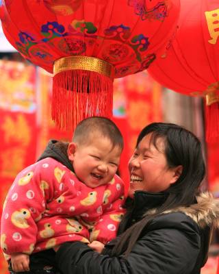2月2日,一农村妇女带着孙子在恩施市六角亭办事处集市摊前逗乐。春节临近,恩施土家族苗族自州的80多个乡村集市,迎来山山寨寨的农民喜办年货。集市上购销两旺,交易红火,处处洋溢着喜气祥和的气氛。