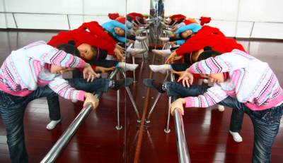 2月2日,恩施市施州民族小学舞蹈队的学生们正在压腿。从1月中旬放寒假开始,孩子们每天都在排练具有浓郁民族风情的舞蹈《直嘎思得》,为正月初五恩施市小渡船办事处举办的迎新春文艺表演做准备。通讯员黎袁媛摄