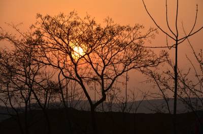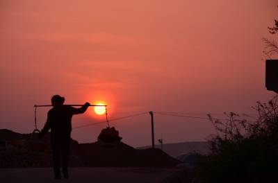 落日熔金映古宅