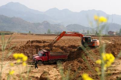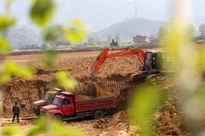 4月13日,竹溪县蒋家堰镇新生村低丘岗地改造现场,机械正在施工。竹溪今年投资6000万元对低丘岗地进行改造,通过土地平整工程、灌溉与排水工程、四间道路与桥梁工程等建设,利于机械化耕作,使低丘岗地及低、中产田得到彻底改造,项目涉及该县305省道沿线的蒋家堰、水坪、中峰、龙坝、县河5个乡镇,共7个片区,项目完工后,将新增耕地600余公顷。