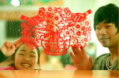 2月3日,恩施市ESS儿童村里的孩子在窗台上贴上红红的”全家福”。生活在儿童村里的20多名孤儿过着幸福美好的生活。年节将至,孩子们个个别出心裁地写春联、剪窗花,把儿童装扮得漂漂亮亮,年味浓浓。