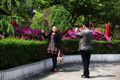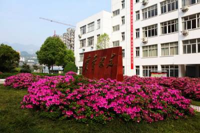 秭归县委党校满院杜鹃怒放吸引不少人前来观赏并摄影留念。