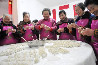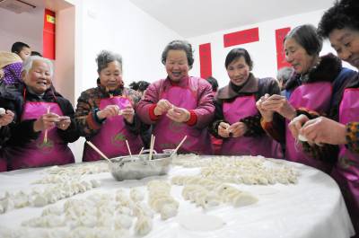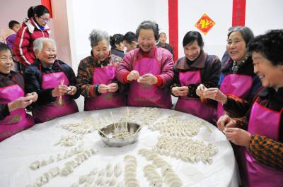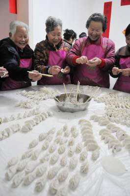 2月4日,老人们围在一起包饺子。当日,西陵区夜明珠街办在镇平路一家餐厅举行包饺子比赛,辖区20多名”空巢”老人和家庭困难老人聚在一起,包饺子、唠家常,喜迎新春佳节到来。视界网黄翔摄13986769494