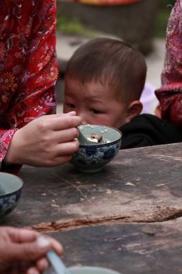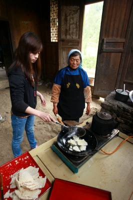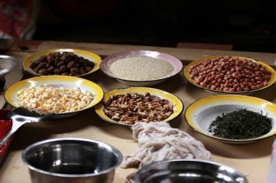 三道茶为油茶汤,称之为“甜甜蜜蜜”。油茶汤的制法没有一定之规,主要原料也视主人家的经济情况决定。一般都以自家房前屋后自产的果实为辅料,玉米、花生、核桃仁、板栗等,经滚油炸熟之后即用沸水冲泡。