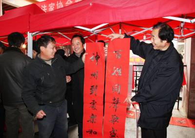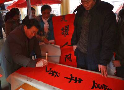 黄梅县书法家协会组织当地书法家现场挥毫泼墨,为市民们送上3500余幅春联,也为市民送上了最美好的节日祝福。王政摄