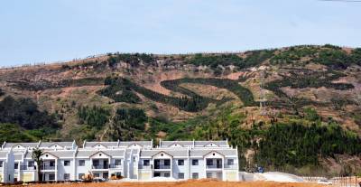 国家南水北调中线工程丹江囗库区畜水后,郧县汉江段形成较宽水面,许多江水进入山沟和山谷地带形成风景地带,为配合自然景观建设,郧县投入人力、物力、财力全力打造汉江沿岸生态汉江旅游经济带的人文景观建设。2011年郧县为柳陂镇移民新村卧龙岗社区后的山腰上投资150万元,用25000株龙柏栽出长418米,宽15--25米的巨龙图案,使当地青龙山上真正有了一条栩栩如生的展现在移民新村卧龙岗的后山上。今春柳陂镇移民新村卧龙岗社区后的高切坡保护工程完工,形成方格状图案,为此园林部门边速跟进,设计出长150米,最宽处70米的7彩凤凰图案,使用8万株火棘、杜鹃、龙柏、女贞、红叶石楠、金边黄杨、海桐球载出一幅巨幅飞翔的7彩凤凰,使飘亮的移民新村与龙凤呈祥图与畜水后的水面相互衬托构成一处旅游观光景地。