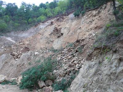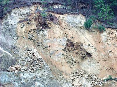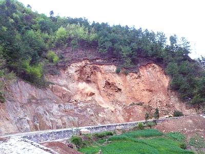 15日,笔者摄于汉水南岸一处清除前的山体滑坡现场。“天干炸裂子,下雨垮鳖子。”汛期将至 滑坡已始。针对雨季容易引发山体滑坡,天干是诱因的情况,郧县及早安排部署今年汛期防汛工作,提前建立汛期防控体系,确保重点区域人民生命财产安全。(本报视界网周宗华摄)