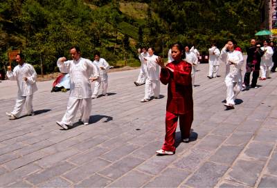 图片 亮丽青春舞动在羌寨 4月14日,黄金洞麻柳溪天韵购物广场上,老人们正在舞动青春。当天,利川市民族老年健身队统一着装乘车赶到咸丰黄金洞旅游景区麻柳溪天韵羌寨,在广场上表演太极和摆手舞,年龄最大的八十二岁,全民健身显现一饱眼福。本报视界网 吴朝军摄