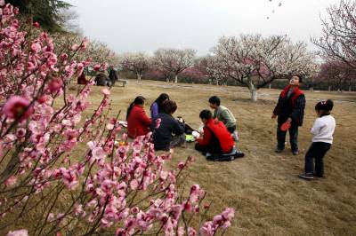 三峡环保公园梅花绽放2010年2月4日,游客在三峡环保公园拍摄鲜艳夺目的梅花。三峡环保公园的梅花迎春绽放,吸引了众多游客,受气候影响今年的梅花比往年提前半月开放。三峡工程采取边施工建设边绿化环境,实现了工程建设与工程环境绿化同步进行。目前,三峡坝区四季如春、鸟语花香,优美的生态环境和雄伟的三峡大坝交相辉映。文振效