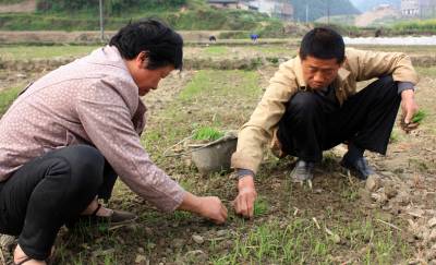 科学育苗促春播 4月16日,竹溪县水坪镇沙坝村的农民正在移栽秧苗。据了解,在县农业技术人员的指导下,通过采取将全村11个组农民种植的1066.66亩玉米、445.38亩水稻作物集中起来,统一育苗、统一时间、统一管理等科学方法,最大限度地节约土地、农资、科技和劳动力资源,促进了春播生产。截至当日,该村玉米育苗已全部移栽,水稻育苗移栽也接近尾声。(视界网 王忠春 摄)