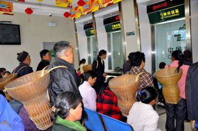 温馨服务喜领“粮补” 4月16日,100多名村民正在恩施市红土邮政支局营业厅有序地领取粮食补贴。 4月份以来,该市邮政系统开展“粮食补贴直通车”服务活动,本年度粮食直补和农资综合直补资金合计5458.87万元,让农民领取补贴方便快捷,补贴资金运行安全,在营业大厅设立了粮补专柜、咨询台、座椅、饮用水等便民服务。把党和政府关注和改善民生的政策落到实处,更好地服务当前春耕春播生产。(本报视界网彭绍峰摄)