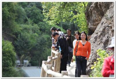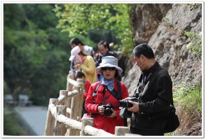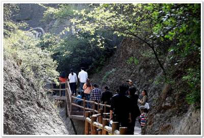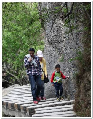 行走在太极峡里,山时高时低,路时宽时窄,路边树木吐新绿, 脚旁山间野花烂漫.不知不觉中已汗疏流夹背,平日在家中很少运动我已感觉很累了,我就是这样走走停停,一路走下去,越走越觉得身力不支,但始终坚持不放弃,终会一步步接近目标。行走需要的是恒心和毅力!