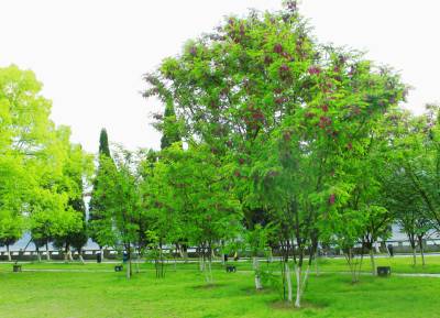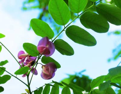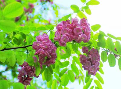 近日,宜昌滨江公园中段的几株红色槐花盛开了,由于比较少见,吸引了不少市民驻足观赏。 槐花(洋槐)4-5月开花,花期一般为10-15天,为多生花,总状花序,蝶形花冠,盛开时成簇状,重叠悬垂。花色以黄色或黄白色多见,红色较为少见。槐花味道清香甘甜,富含维生素和多种矿物质,同时还具有清热解毒、凉血润肺、降血压、预防中风的功效。将其采摘后可以做汤、拌菜、焖饭,亦可做槐花糕、包饺子。不过红色槐花据说易引起过敏,不宜食用。