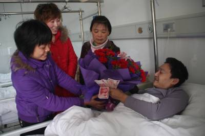 2月4日,恩施市市民自发地前往医院看望已住院两年多的巴东县农民工张洪艳,并送去了2000多元现金和一些生活物质。自从2007年在巴东县绿葱坡镇黄秋树湾煤矿受伤后,下身瘫痪的张洪艳一直在医院接受治疗,并在医院过了两个春节。如今,春节马上到了,张洪艳又面临缺钱停药了,张洪艳说,他最大的愿望就是早日治好伤,早日回到家里过新年!