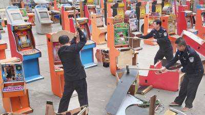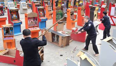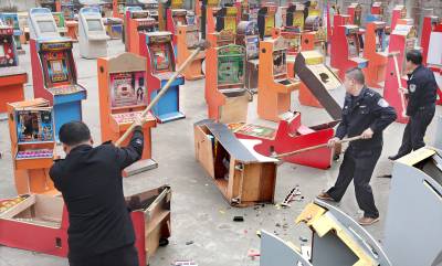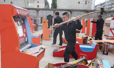 销毁赌博游戏 16日,曾都区公安分局开展了集中销毁赌博电子游戏机活动,共集中销毁赌博电子游戏机800余台。据了解,3月份以来,对全区50余家游艺类娱乐场所进行了交叉式清理整治,成功捣毁、关闭、停业整顿游戏机赌博窝点46处有效遏制了利用赌博机参赌的活动。 楚天快报记者杨闻名 摄