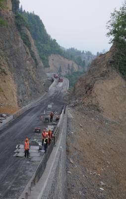 4月16日,大峡谷旅游公路施工现场如火如荼,施工队正在以每天350米的速度全力推进水稳层铺筑,预计4月底完成路面工程,“五一”前全面建成通车,迎接黄金周“大考”。