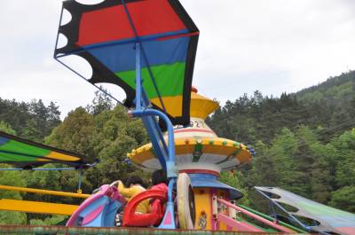 16日,湘鄂边苏区鹤峰县革命烈士陵园里儿童乐玩游车。1926年到1933年,贺龙元帅在这里金戈铁马十一次进出鹤峰,当时全县6万多人有2.5万余人参加革命,3000余名土家儿女的鲜血染洒这块土地。烈士陵园里有彭德怀介绍入党、毛泽东签发的共和国第一号烈士、红九师师长段德昌、贺龙元帅亲大姐、湘鄂西第一位女红军司令员贺英等先烈长眠在这里。 湘鄂边苏区鹤峰县革命烈士陵园系国家级重点烈士纪念建筑物保护单位,全国爱国主义教育示范基地,国家级旅游AA景区,每天来这里祭拜和游玩人不断。