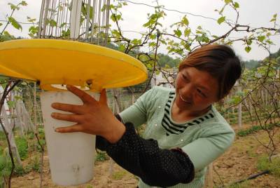 4月16日,建始县花坪镇村坊村一组葡萄清洁种植示范基地,农户刘京平正忙着抹掉葡萄副梢,查看太阳能杀虫灯。 去年以来,该镇在省环保厅的支持下,投资400余万元建起100亩葡萄和100亩猕猴桃清洁种植示范园,安装太阳能杀虫灯灭虫,使用缓释有机肥增肥,实施滴灌技术,减少化肥农药使用,助力特色产业发展走纯天然、无污染、清洁化种植之路,取得良好实效。(本报视界网图片库 卢家文摄) 地址:建始县花坪镇宣传办卢家文 电话:13972401505 邮编:445308