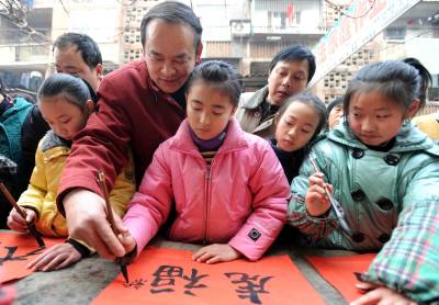 5日,一帮小学生正在黄沙明的指导下练习书法。黄沙明是荆州市荆州区荆棉生活区社区工作人员,他在社区开设简易书画室,接纳中小学学生学习绘画,练习书法,完成家庭作业,小小书画室成为社区儿童最受欢迎的文化活动中心。(记者杨平摄)