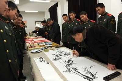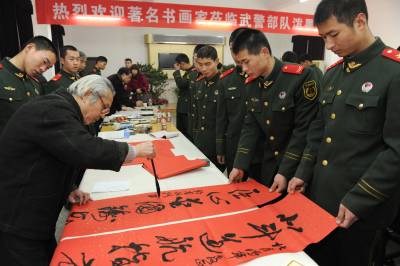 > 湖北省楹联协会书画家慰问湖北总队二支队官兵