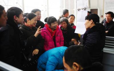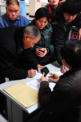 2月3日,在湖北襄樊鄂西北劳动力市场,残疾人在就岗位选择在用手语进行交流。当天,襄樊市就业援助月暨首残疾人专场招聘会启动,有68家企业提供了2270个岗位,其中残疾人岗位770个,众多的残疾人在招聘会上找到岗位,并签定劳务合同。据襄樊市残疾人联合会介绍,这是襄樊市第一次举办残疾人专场招聘会。 安富斌 摄