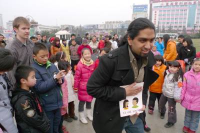 2月5日下午,襄樊阳光未来美术学校的学生们与阿里顿英语学校的外教一起做游戏。为丰富学生寒假生活,激发学生的兴趣,培养学生的观察力、创造力、感知和想像能力。湖北省襄樊的一些学校找准孩子的个性,与外教一起进行双语游戏,然后以外教为模特现场写生。