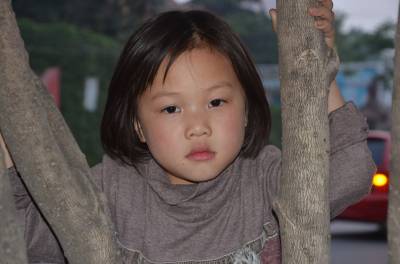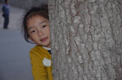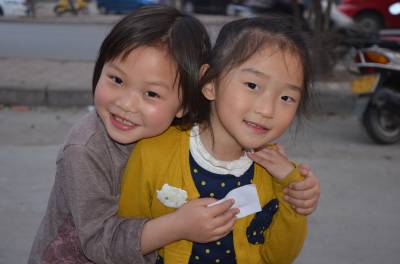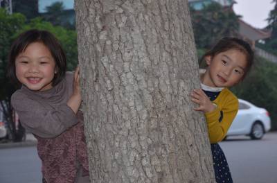 2013年4月17日傍晚,湖北省郧县县城两个小女孩正开心地玩耍。(本报视界网 董向阳 摄)