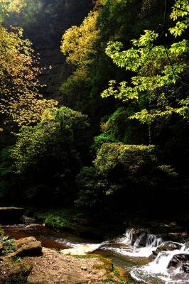 九路寨位于保康西南边陲,地处保康、宜昌、兴山三县交界处。这里四面绝壁,仅有九条崎岖的小路盘绕出入村寨。解放前,当地土豪孙秀章凭借天险,踞寨为霸,拉起了200余人的队伍,称雄一方。他堵塞了其中的八条路,仅在奇险无比的寨口“钻天洞”留下一条靠攀援才能上下的路,居险把守。 九路寨东西长5.5公里,西北宽4.5公里,最高海拔1426米,山寨被战口河、天桥河、新路河、柳簸坪河、南门河、霸王河、锣鼓河等7条河流所环绕,整个景区约90平方公里。解放以前的九路寨十分封闭,几乎与世外隔绝,有几条山中鸟道出入,故而得名,依次为走马岭、老湾岩口、南岩坡(柳簸坪)、蒋家槽(龙洞扁)、新路、卡子沟、钻天洞、蔡家沟、鹰嘴石。因狭窄奇险,一般无人行走。 九路寨山脉纵横,沟谷相通,山峰耸峙,溪涧回环。因峰高峡幽,人烟稀少,数十种珍禽异兽栖息于此;珍稀植物种众多,是一个绿色资源宝库。这里一直处于原始状态,山、林、寨、洞、瀑诸景组成神妙、奇幻、幽美的自然风光,可与三峡比雄,与华山比险,与青城比幽,与峨嵋比秀,与张家界媲美,属典型的高山河谷自然景区。