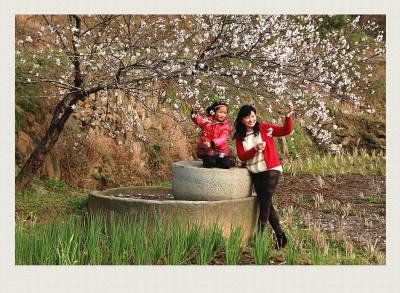 稻田边,古老的研盘本来就已经够让人浮想联翩的,再加上这棵窈窕多姿的粉面桃花,怎能不让人驻足呵护、欣赏之!??