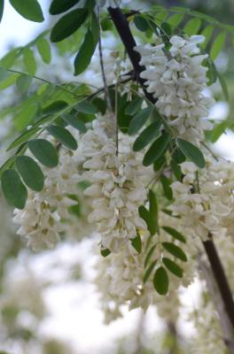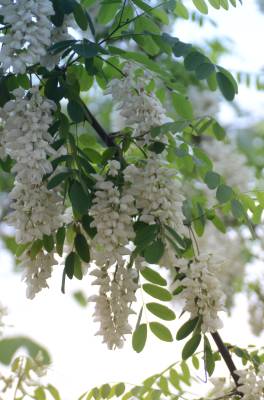 4月20日去文仙洞拍樱桃,在路上看见两棵开满槐花的槐树.槐树树型高大,喜光、根深,生长迅速。其羽状复叶和刺槐相似,但刺槐的叶略透明。槐树的花为淡黄色,可烹调食用,也可作中药或染料。其荚果跟其他豆类植物不同,肉胶质,在种粒之间收缩,形成念珠状,俗称“槐米”,也是一种中药。槐树花期在夏末,和其他树种花期不同,所以是一种重要的蜜源植物。