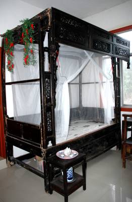 4、收藏的雕花床。
