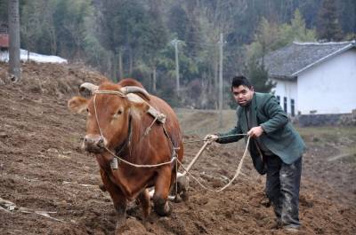 2月7日,在海拔1700米的恩施市红土乡大河沟村一农民牵着耕牛正在犁地。俗话说”一年之计在于春,一日之计在于晨”,春回大地,万物复苏。连日来,天气晴好,气温回升转暖,在恩施市农民不误农时,人勤春来早,勤劳的农民朋友们除草翻地,清沟搭棚,备耕热情节节高,这样热闹场景将预示着今年秋天会迎来一个丰收好年头。