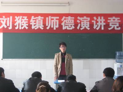 4月24日上午,宜城市刘猴镇2013年师德演讲竞赛在刘猴小学隆重举行。经过各学校校内选拔,共有14名选手参加了本次演讲。选手们以饱满的热情、感人的身边事、朴实的语言,结合自己从教以来的成长历程,结合工作中的感想体会,或讲述身边的故事、或阐述真切的道理。声情并茂、娓娓道来,从不同角度表达了对教育事业的热爱、忠诚、崇敬,赞颂了默默耕耘、甘为人梯的教师形象,抒发了作为一名人民教师的光荣和自豪,表达教育工作者奉献爱心的快乐感、幸福感、成就感,诠释了高尚师德师风的内涵。(本报视界网 周卫华 摄)